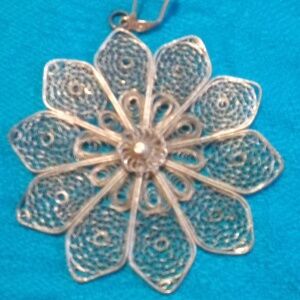 These beautiful vintage Flower shaped earrings are made of coiled and woven silver wire.Measures approx: 2 1/2" around+ 3/4" ear hooks.Note:they are a bit heavy but look fabulous!