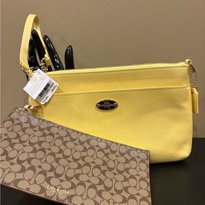 Coach Yellow Saffiano Leather Clutch-C logo Signature Pop Pouch-NWT-Wristlet
