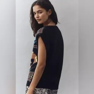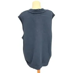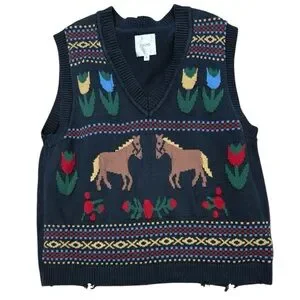 Free People Navy Horse Isles Knit Sweater Vest Medium Equestrian Cottage EUC