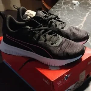 Sleek black Puma shoes with pink detailing. Ideal for everyday activities. Only worn in store to try, forgot they existed in my closet 🤡