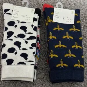 Elevate your everyday essentials with this charming trio of crew socks! Experience a burst of color and personality with each pair, designed to keep your feet cozy and stylish. One pair features a playful bird pattern in navy and yellow, adding a whimsical touch to your look.