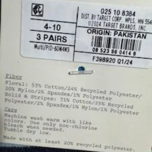 Material: Cotton Blend, Nylon Blend, Spandex, Polyester