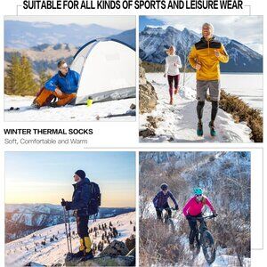 Winter Warm Socks: These thermal socks are made of 43% acrylic fiber, 42% cotton, 10% polyester and 5% spandex. The acrylic fiber material is good for keeping warm function, and the cotton material also features moisture-wicking abilities.