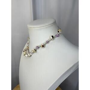 Don’t miss this costume jewelry necklace beads beads off white and purple unusual faux puca puka boho bohemian trendy perfect for contemporary casual or career wear.
