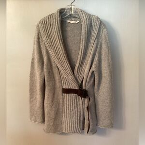 SOFT SURROUNDINGS SIZE XL GREY COUNTRY WEEKEND LEATHER BELTED CARDIGAN SWEATER