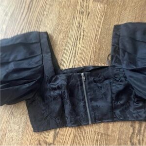 Future Collective Black Cropped Puff Sleeve Zipper Back Top Size 2 NWOT