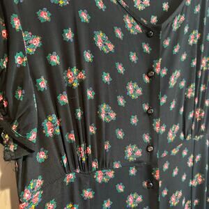 The perfect 90s grunge floral dress, empire waist, full button front, darts at bust, lightweight, unlined, no pockets.