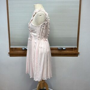 Paul & Joe Sister Baby Rose Pink Eyelet Ruffle Backless Mini Dress with pockets. Lined. Back zipper closure