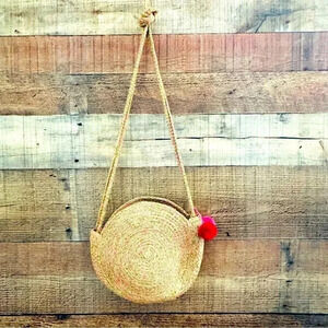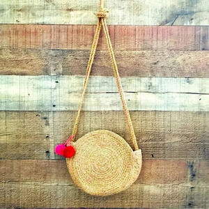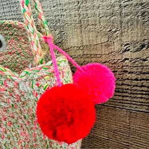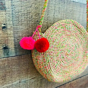 NWOT Shiraleah Round Woven Neon W Pom Pom Crossbody