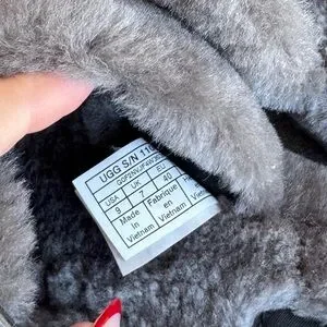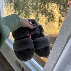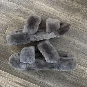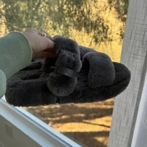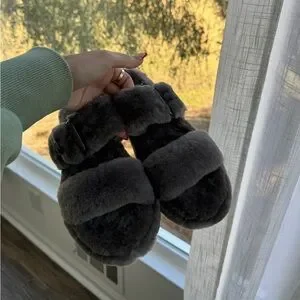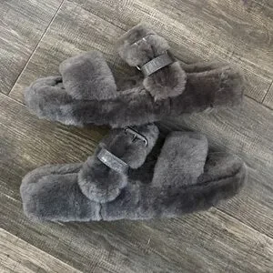 UGG Fuzz Yeah Sheepskin Double Strap Grey Slip On Slides Sandals Women’s 9
