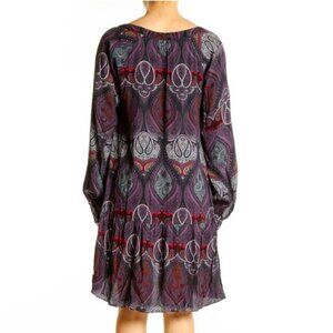 Sanctuary ✦ Purple Paisley Boho Mini Dress ✦ V-Neck w/ Tiered Hem & Long Sleeves