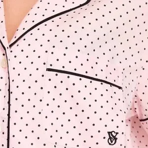 Victoria’s Secret Heritage Cotton Long Pink Polka Dot Pajama Set Large