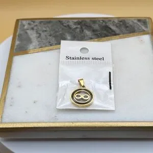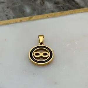 Small Stainless Steel Gold & Black Enamel infinity Pendant Charm