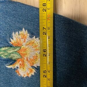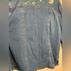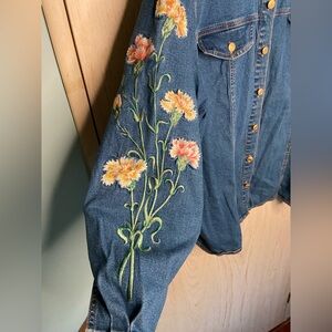 Bob Mackie Wearable Art Denim Shirt Womens Sz 1X Floral Embroidered Button Down