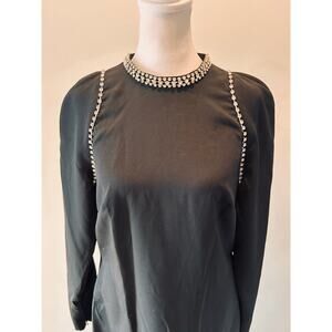 NWOT IEENA for Mac Duggal Black Long Sleeve Gown with Rhinestone Detailing US 8