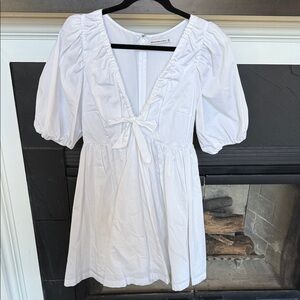 Abercrombie White Puff Baby Doll Sleeve Dress with Bow