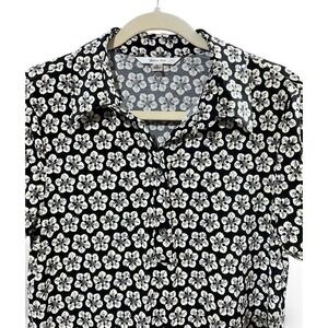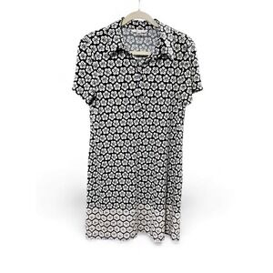 Sophie Max Floral Print Button Front Shirt Dress Midi Black White Pink Size L