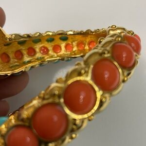 Kenneth Jay Lane KJL Gold Turquoise & Coral Cabochon Hinge Bracelet