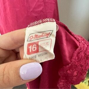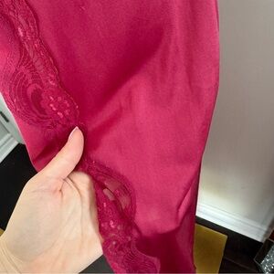 Vintage raspberry Pink Lace Trim Nightgown 16 coquette fairy old Hollywood