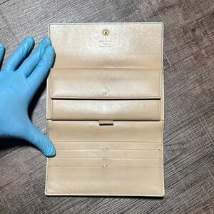 Elegant black wallet with iconic monogram design. Features a sleek and stylish look. Perfect for any occasion. Has some spots on the inside and the flip pocket inside. Snap works perfectly fine . Code added in photos. See all photos for details. No holes at all. Corners are in excellent condition.