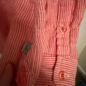Breast pockets help keep small items safe. Pink Striped preppy Casual outdoors granola girl natural
