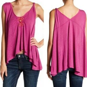 Free People Small New Vibes Tank Top Pink Beaded High Low Flowy Linen