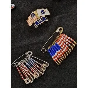 Vintage Patriotic Red White Blue Pins & Red Wing Shoe Charm