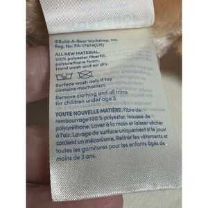 Soft tan plush with embroidered eyes and licensed tags