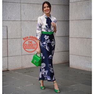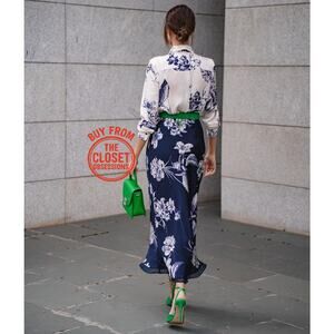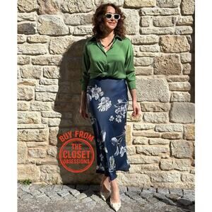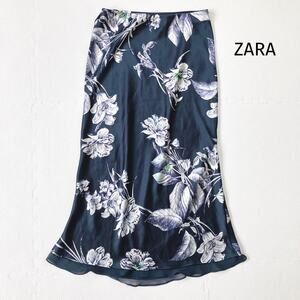 Navy blue/white midi skirt with a high elastic waist. Semi-sheer detail at hem. From ZARA, in size M. New with tags. Sold out in stores.