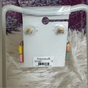Francesca’s Paige Rubber Disc Arch U Shaped Rainbow Earrings Pastel