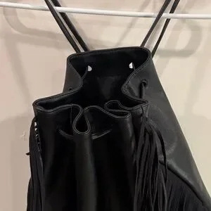 Elegant black backpack with fringe accents. Ideal for a trendy look.