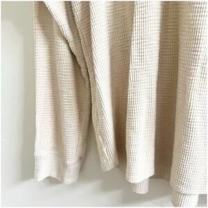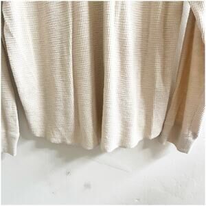 The Lucky Brand Vintage Men’s Lived In Henley Thermal Shirt is a stylish and comfortable sweater in a classic size Large. Made from cozy cotton with a waffle-knit design, this shirt features a solid beige color with a crew neckline and long sleeves. Perfect for the fall, winter, and spring seasons, it embodies a grunge, college, 80s, and 90s style that is both retro and timeless. Machine washable and featuring thermal properties, this sweater is a must-have for any man looking to add a touch of vintage flair to their wardrobe.