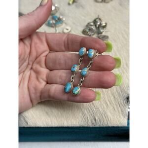Pair of Native American Sterling Silver &&🩵💙Blue Ridge Turquoise Triple Dangle Post Earrings