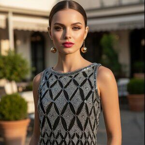 VINTAGE 80's GLAM COTE D'AZUR Peplum Beaded Silk Top S Embroidered Sequins Black