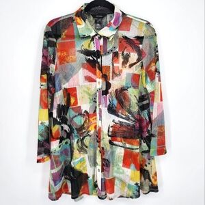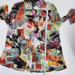Ali Miles Button Down Sheer Shirt Art To Wear Abstract Colorful Large