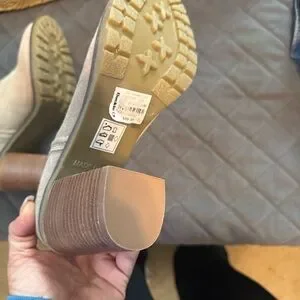 Elegant cream boots with sturdy block heel. Perfect for versatile styling.