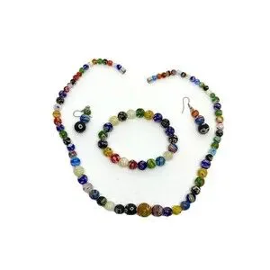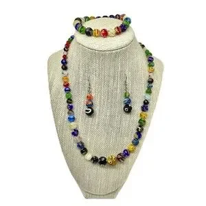Multi Color Murano Glass Necklace, Earrings & Bracelet Set