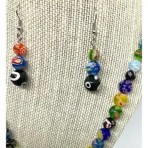 Beautiful Murano Style Beaded Stretch Bracelet, earrings and Necklace (20”) inches long. Necklace has graduated beads and a stainless steel very strong magnetic closure. Each bead has its own unique design and an array of colors.