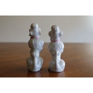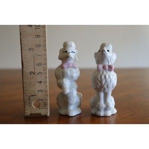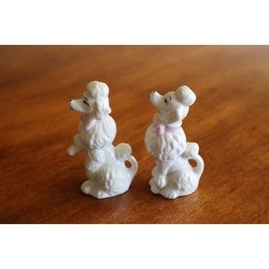 Lot of 2 Vintage Ceramic White Poodle W/ Pink Bow Japan 1950-60s Sitting Begging