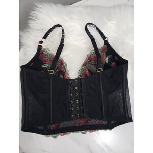 Victorias Secret Very Sexy Cherry Bra Longline Corset Sheer Black Lace Size 32DD