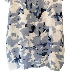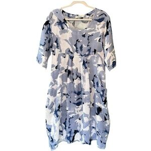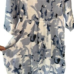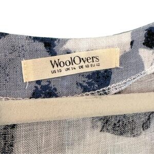 WoolOvers Womens Linen Tunic Dress Blue White Lagenlook Print Pockets Size 10