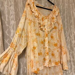 Free People Loretta Tunic Top Tea Combo Cream Yellow Floral Print Ruffle Boho