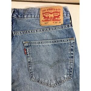Stylish and comfortable men's blue distressed jeans. Perfect for a casual look.