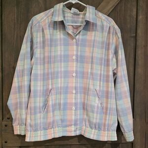 Vintage Alfred Dunner Bomber Jacket Pastel Plaid