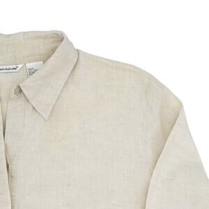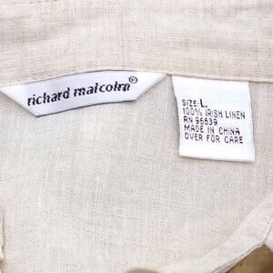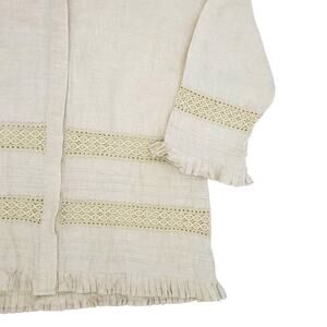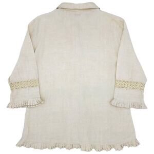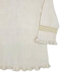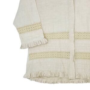 Richard Malcolm Shirt Womens Large Beige Boho Irish Linen Ruffle Trim Lace Top