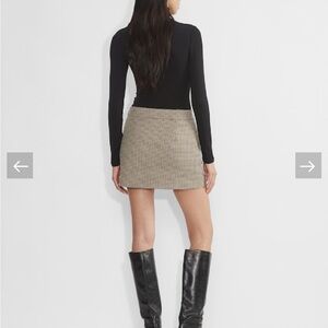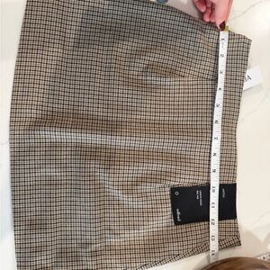 Chic checkered mini skirt by Aritzia. Features a classic tan and black pattern. Ideal for stylish outings.