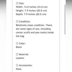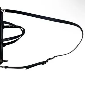 Elegant black leather bag with iconic monogram. Features silver hardware and adjustable strap.