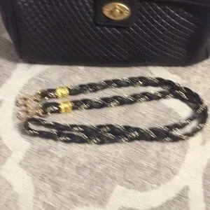 Braided leather and gold tone metal strap is removable