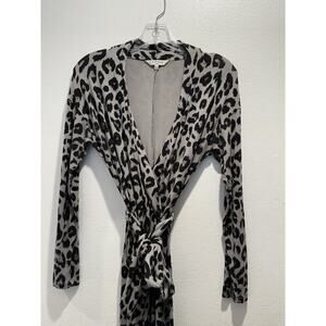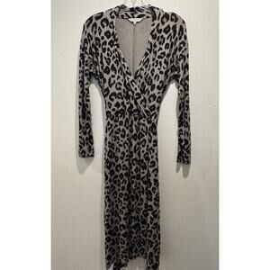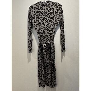 LK Bennett Size US6 Gray Black Leopard Print Long Sleeve Belted Dress READ