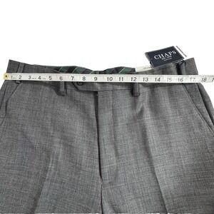 These Chaps wool dress pants are a stylish and versatile addition to any man's wardrobe. Made from wool with a high-rise and flat front design, they are perfect for formal occasions, business meetings, or even a night out at the party. The classic fit and straight leg style offer a timeless and sophisticated look, while the breathable material ensures comfort year-round. With a size 36 waist and 34-inch inseam, these trousers are designed for a regular fit and are sure to make a statement in any city-inspired or preppy-themed outfit.